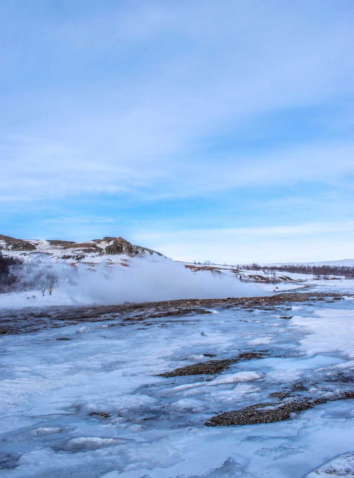 One of Iceland’s most popular tourist sites is the geothermal hot spring area of Geysir and Strokkur. These days, Geysir isn’t very active so the main attraction at the popular spot is Strokkur – which you can (sort of) see…