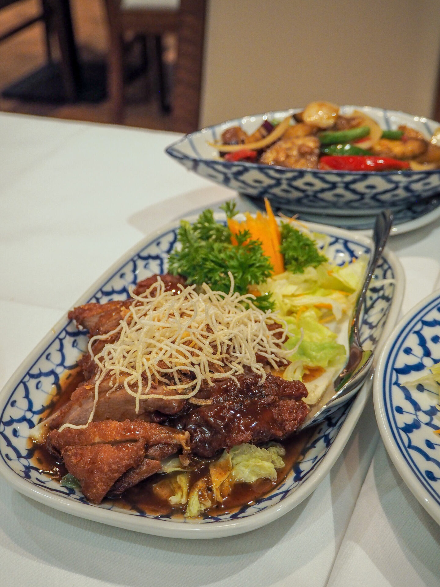 Next we have the tamarind duck – one of Bangkok Bistro’s signature dishes, and our favourite from the evening. This was incredible. The duck was crispy on the outside and beautifully tender on the inside – I’ve got no idea as to how they have managed to perfect the balance of crispy skin & tender meat, but they have absolutely nailed it! Served in a tangy tamarind sauce, this is the best crispy duck-style dish you’ll ever try, I promise. If you only try one thing I’ve recommended – make it the tamarind duck!