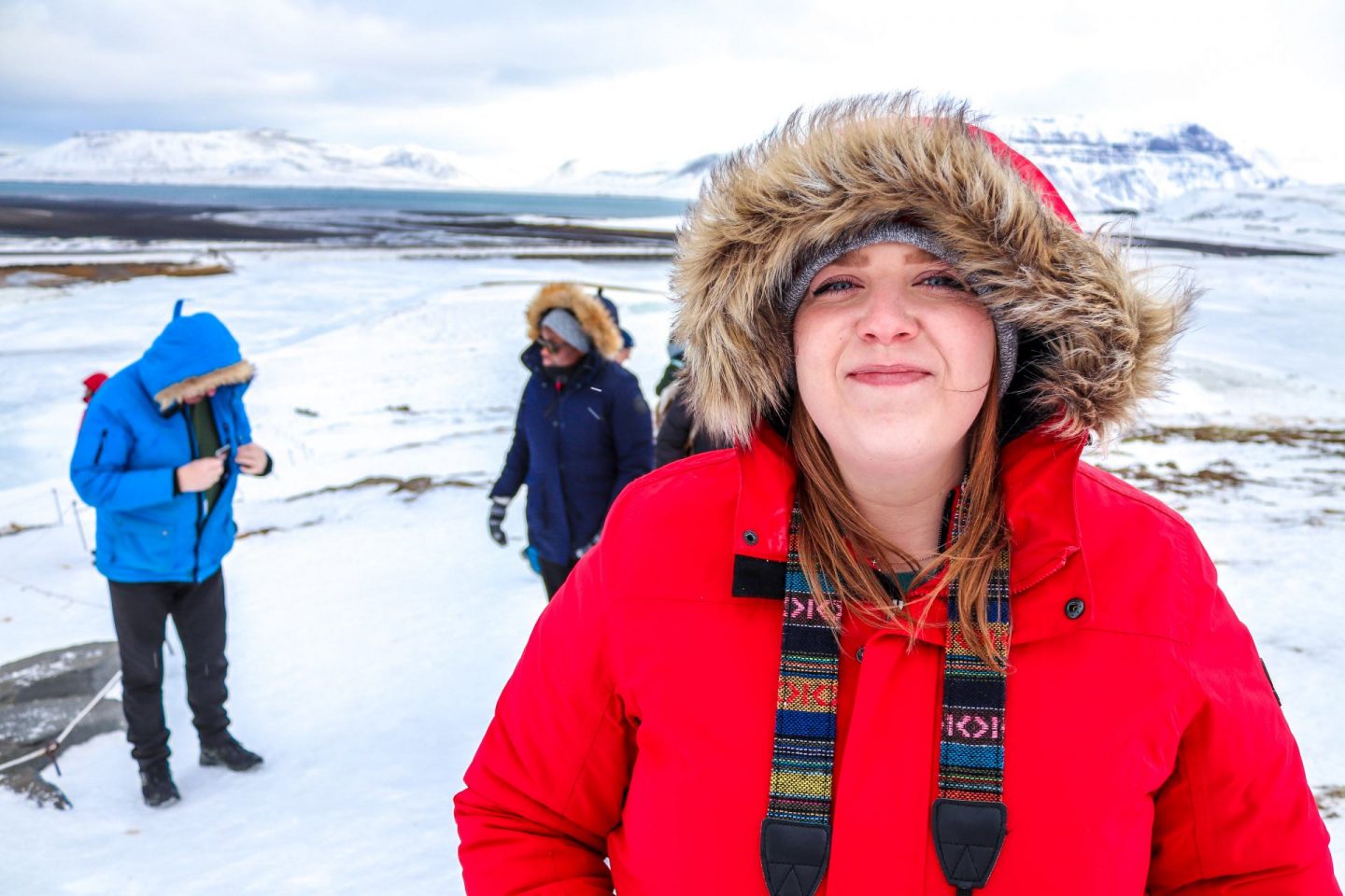 Kirkjufell is thought to be one of the most photographed mountains in Iceland – and we could definitely see why! Even in the depths of winter, with a bitterly cold wind and frozen waterfalls it was beautiful – eerily so. From your vantage point down by the waterfalls you’re treated to a breathtaking view across the landscape and over to the sea.